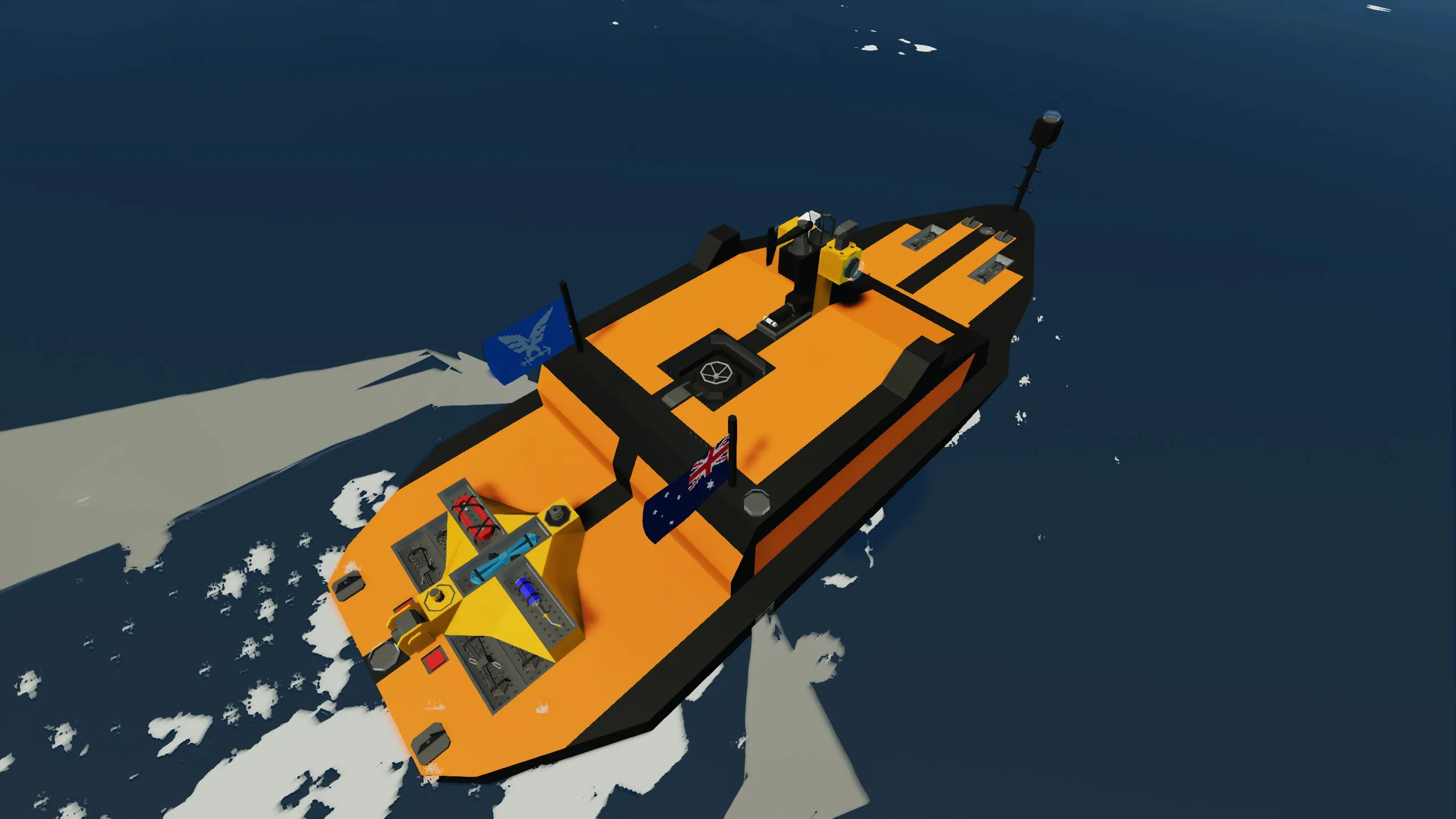 A simple self righting, enclosed hull SAR boat. Features: Top speed - 50 knots Waypoint autopilot Transponder Locator 7 total passengers Doesn't have the biggest fuel tank!!