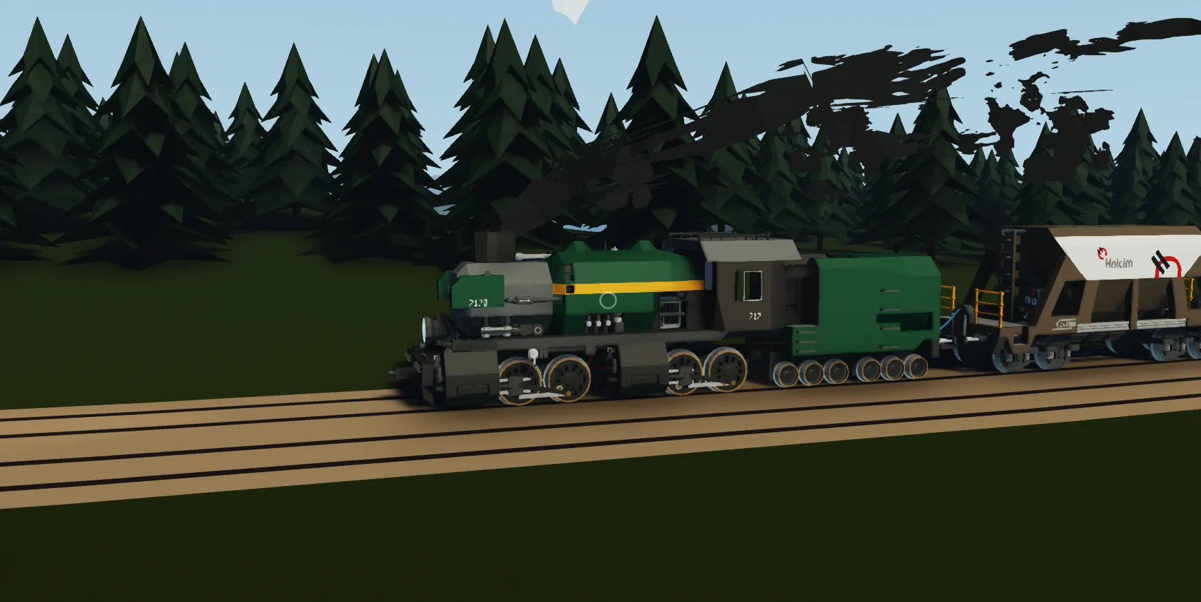 Steam train featuring 2 boilers and 2 sets of pistons for greater traction effort. Works off of a infinite electric furnace glitch. Just put 2 pieces of coal in the conventional furnace to get it started.