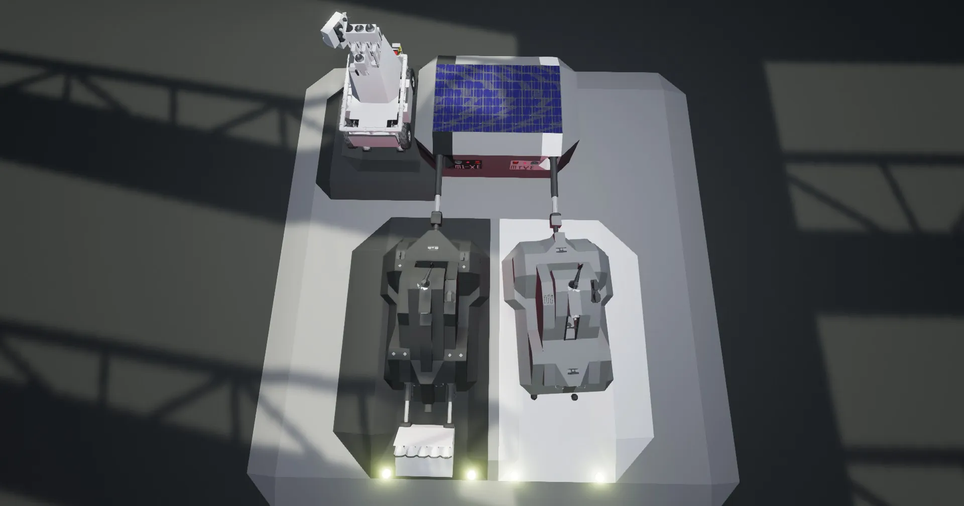 Powertrain- All wheel drive, 8 motor system with high torque ratios. 6 wheels for maximum grip and top speed, lots of batteries for long distance and weight as a negative on speed but a big positive towards resistance to a tornado.