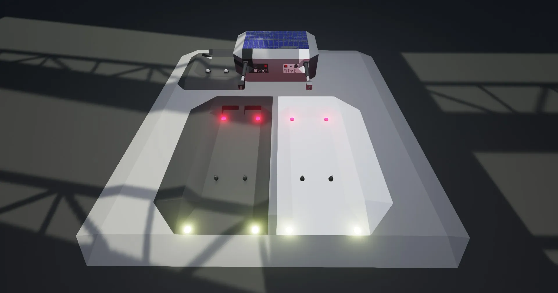 Components- Windows, Analog dials and safety alarms in case things go wrong. Bright spotlights and the easiest control system.
