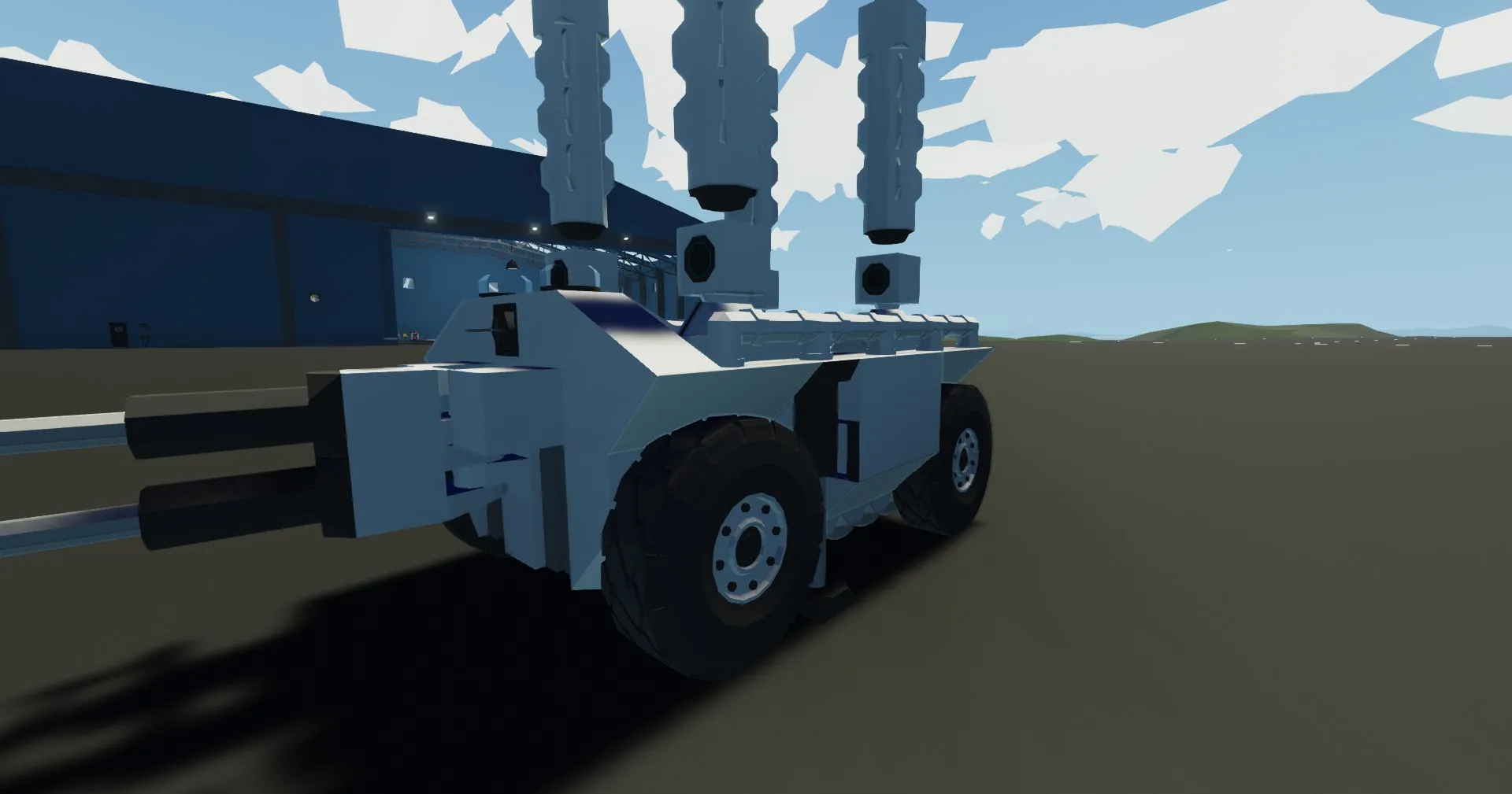 Powertrain- All wheels drive, 16 motor system with high torque ratios. 8 wheels for maximum grip and top speed, lots of batteries for long distance and weight as a negative on speed but a big positive towards resistance to a tornado.