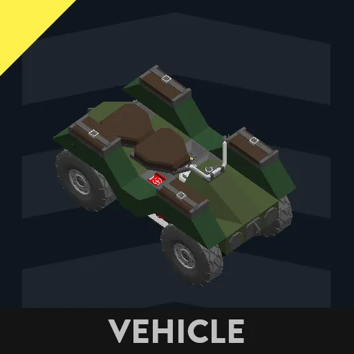 Very basic manual powered quad-runner style land vehicle for exploring, but can be used for assisting with rescue operations, too. Built with the new Saddles and Torque Connector. Designed to be simple and cheap while still being versatile.
