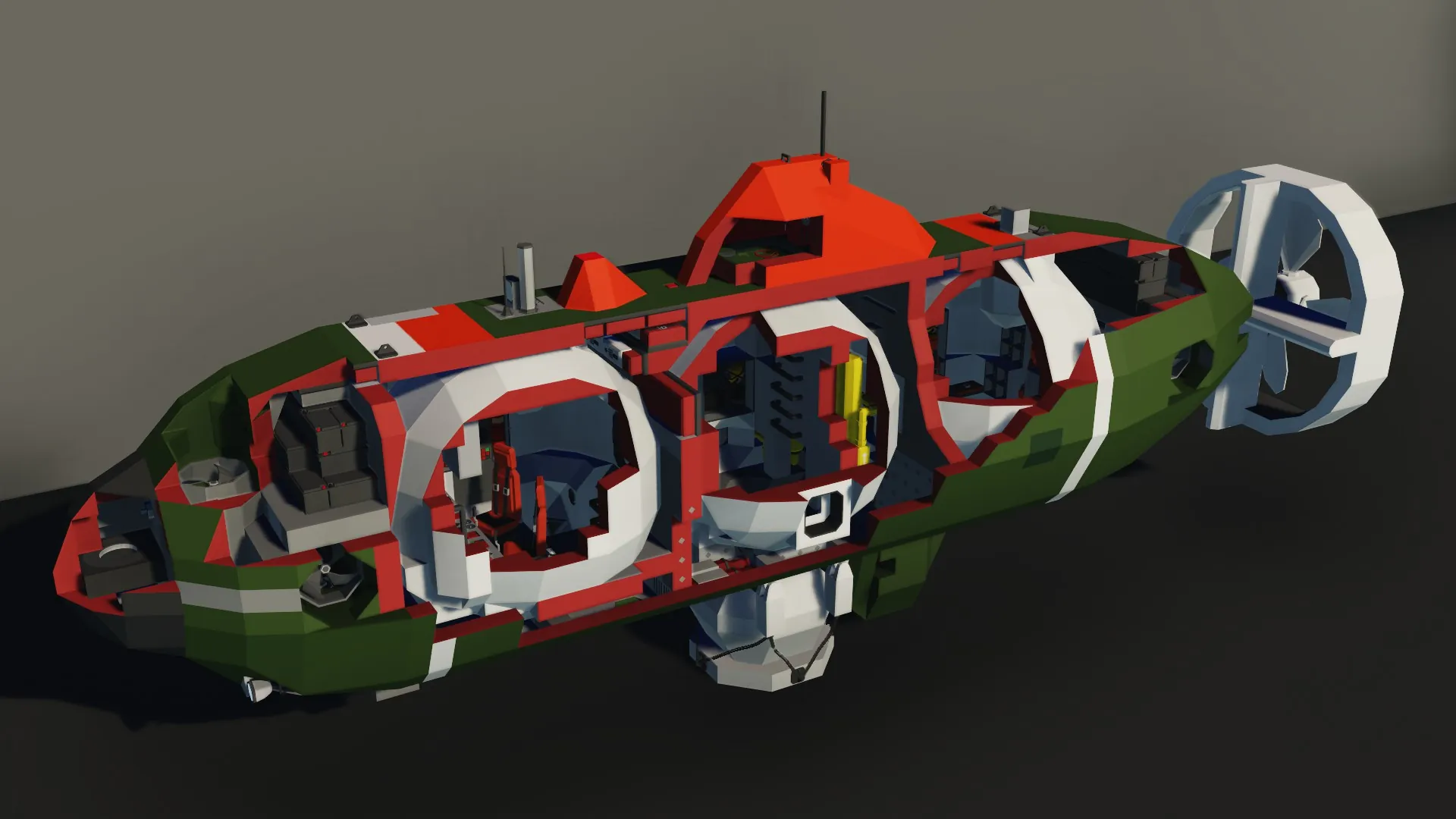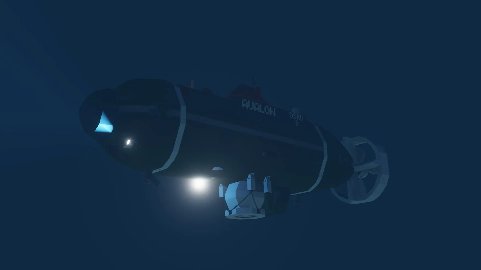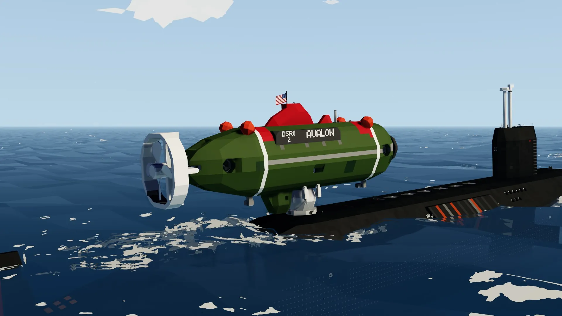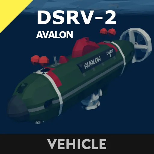 Inspired from the real Deep submergence rescue vehicle, The Avalon was launched in 1971. The submarine, intended to be air transportable, is 50 feet (15 m) long, 8 feet (2.4 m) in diameter, and weighs 37 tons. This sub is capable of descending to 300m (in stormworks). Avalon is battery-powered, and would have needed to pause midway through a rescue mission to recharge its batteries.