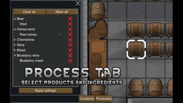 A processor takes a set of ingredients and turns it autonomously into a product over a period of time. The framework supports a huge variety of settings to individualize the processes and brings easy to use UI for players, as well as several other improvements, like better textures.