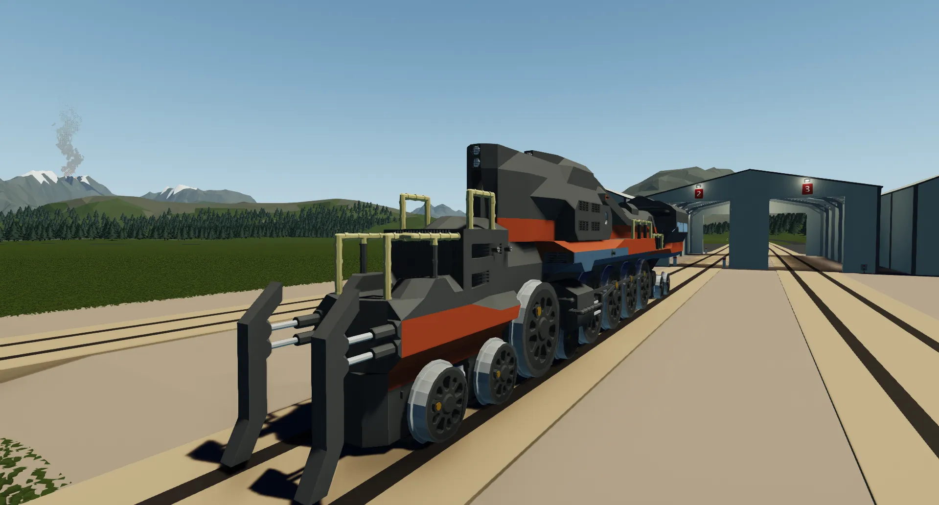 Atomico' is happy to bring to you today a large steam-diesel train locomotive, in a beautiful orange/blue paint.
