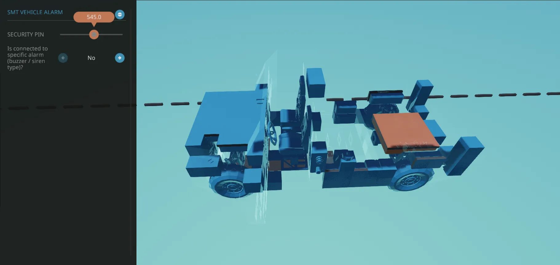 This is the first vehicle GVA is being used in, when armed, the system will detect (when the pin isin't matching what is set) if some one is in the seat, or if the door has been opened. This honks the horn, locks the brakes, and flashes the headlights. Also if this truck is hit the alarm will sound for 30 seconds.