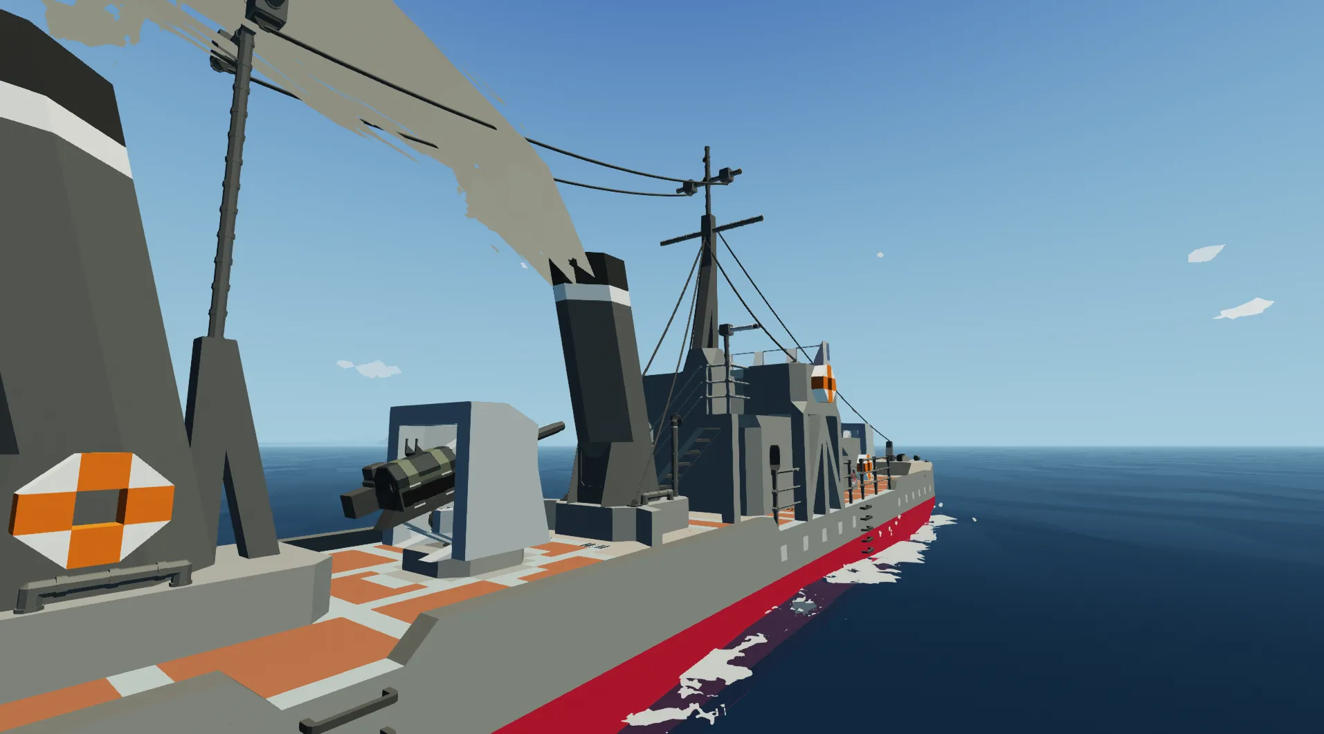Gunboat How to drive 1: Ride 2: Switch on engine 3: Push W key Switch on backgear when back W/S: Throttle A/D: rudder Gun ・Heavy Auto Cannon x4 (Synchronization of movement, roll stabilizer) Speed: 33 knot