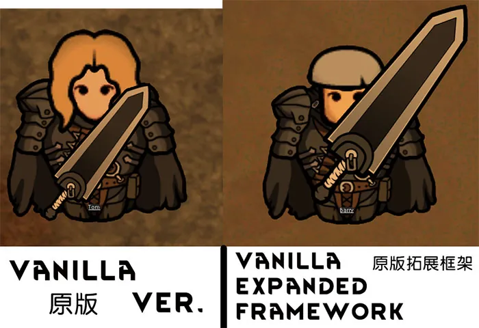 温馨提醒:本MOD可搭配 [url=https://steamcommunity.com/sharedfiles/filedetails/?id=2023507013] Vanilla Expanded Framework - 原版拓展框架 [/url] 的部分功能,让一些物品贴图更具表现力。(仅限V1.2-1.3)