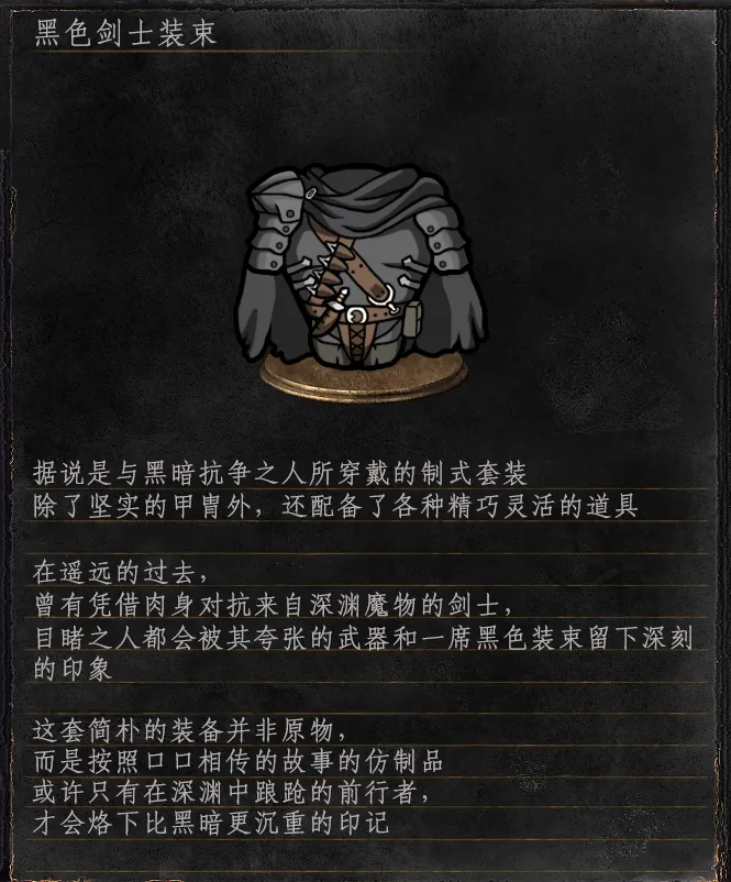 包含有格斯式样的头发与一套黑色剑士铠甲。(贴图支持[Hulk]与[Male]体型)