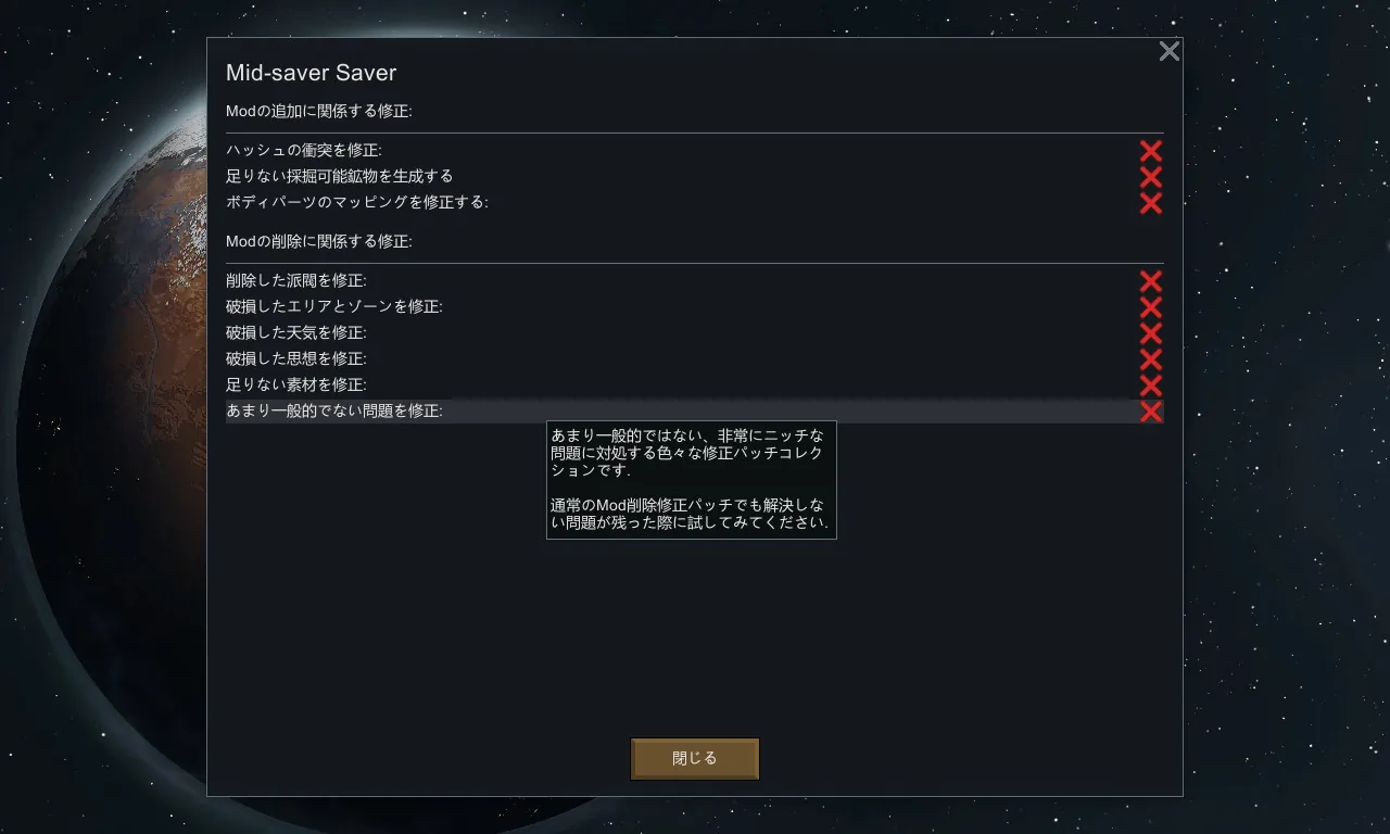 あまり一般的ではない、非常にニッチな問題に対処する色々な修正パッチコレクションです。通常のMod削除修正パッチでも解決しない問題が残った際に試してみてください。