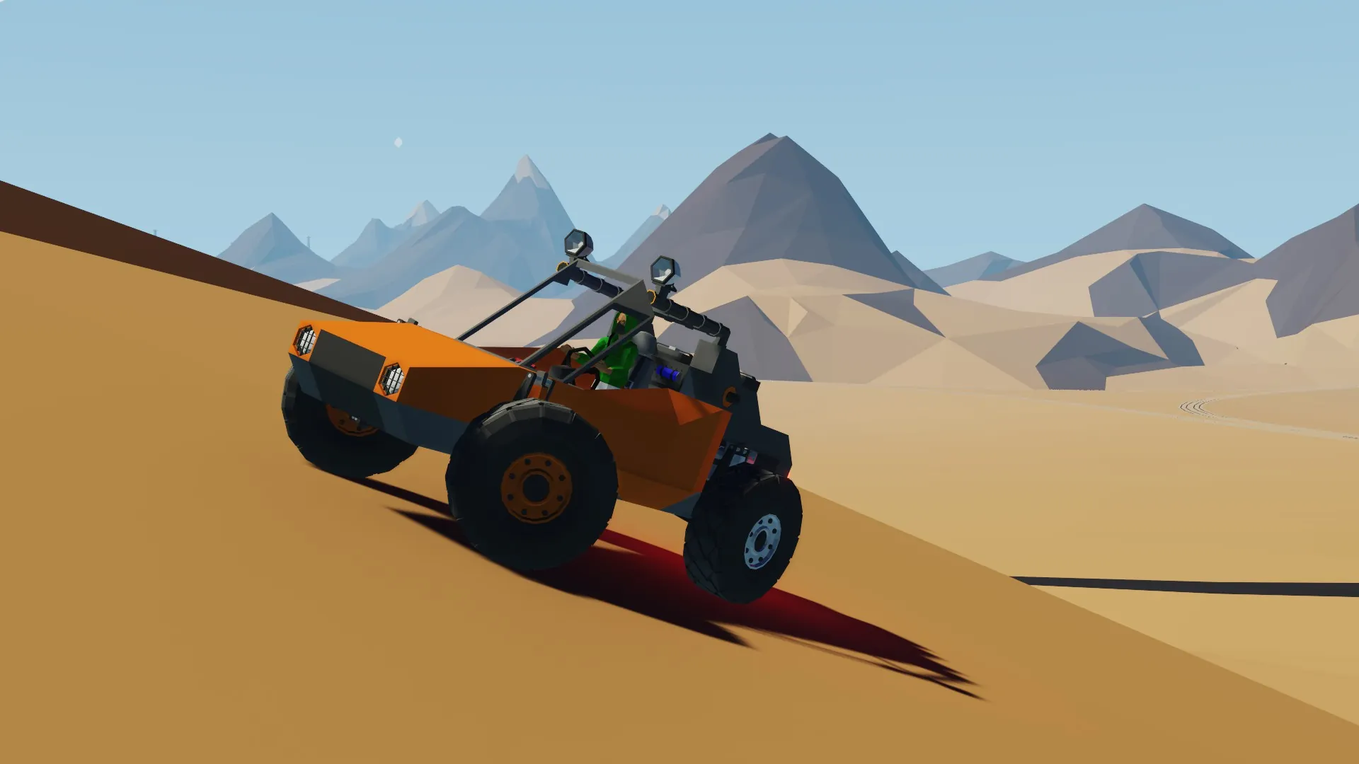 Johny has Comfort and Sport driving modes. Sport mode pulls full throttle from engine, making buggy accelerate as fast as possible, reaching 200km/h. At max speed buggy tends to fly, so be careful.