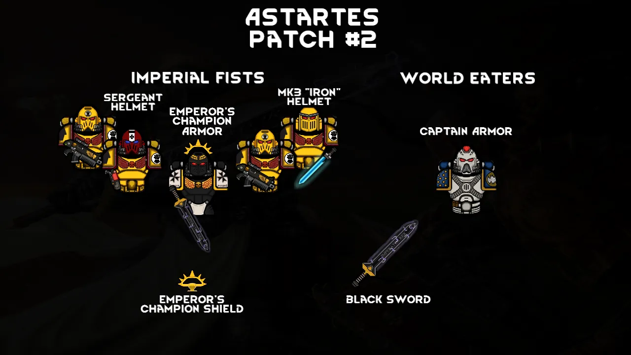 [b] This mod adds 17 new sets of armor, 8 types of weapon from Astartes arsenal, and an entire faction of the Imperium of Mankind from Warhammer 40,000 [/b]