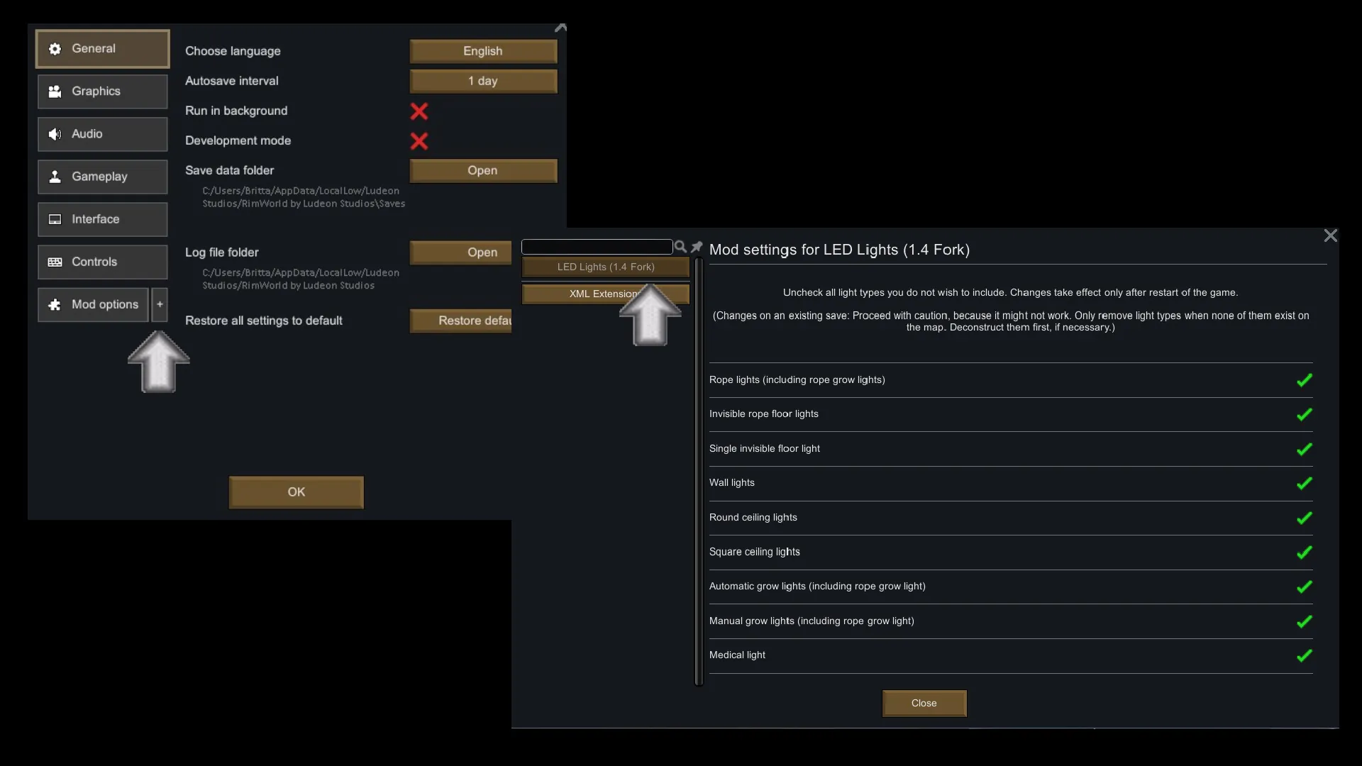 Optional addition to [b]LED Lights (1.4 Fork)[/b]. This lets you exclude light types from your game if you so desire. The mod settings are generated with [b]XML Extensions[/b] which has to be loaded for this to work. Without these two mods, this one will do nothing but throw up errors.