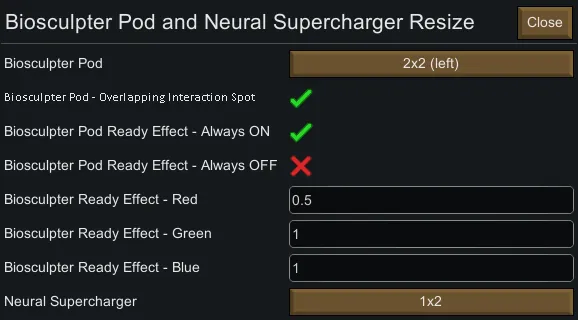 Offers an [b]option to allow for overlapping Biosculpter Pod interaction spots[/b].