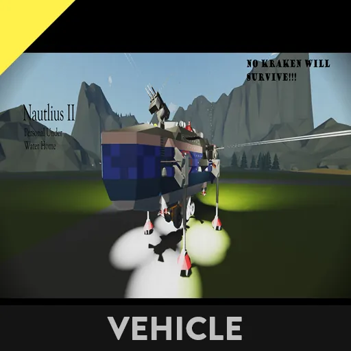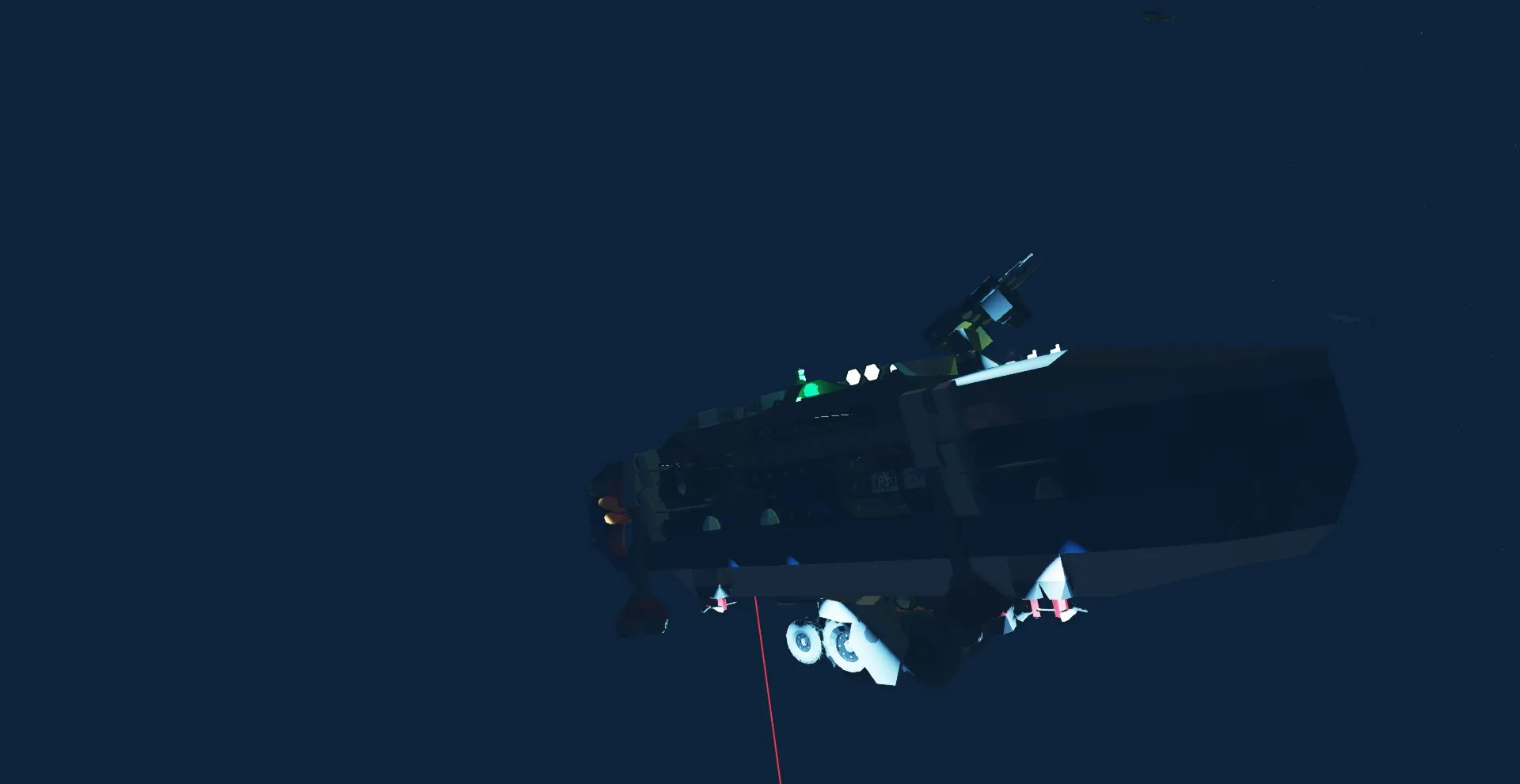 This is a personal submarine own by a grumpy old U-boat war veteran who will shoot any ship that comes in to his radar and sonar range. But as well as being a killer he also travels all across the sea and attacks krakens and megalodons. He mainly sits and waits in the dragon caves. He has refurbished a old submarine hull and added multiple unique and unconventional features E.g. 3 Machine Gun Turrets . Bed . Toilet . Thinking Chair (he uses it a lot) . 4 Props . Table . Stability Legs . Air Lock (MAGIC) . Multiple Spot Lights . Bulge Pump (Manual) . Generators (6 / 5) . CAT Turtle (Under Water Rover) . Gyro (For Roll) . Bed Of Hay . Entrance Hatch (obviously) . He also stole a radar and sonar micro controller of a ships called he is very thank full for these items ;) .ion yet.