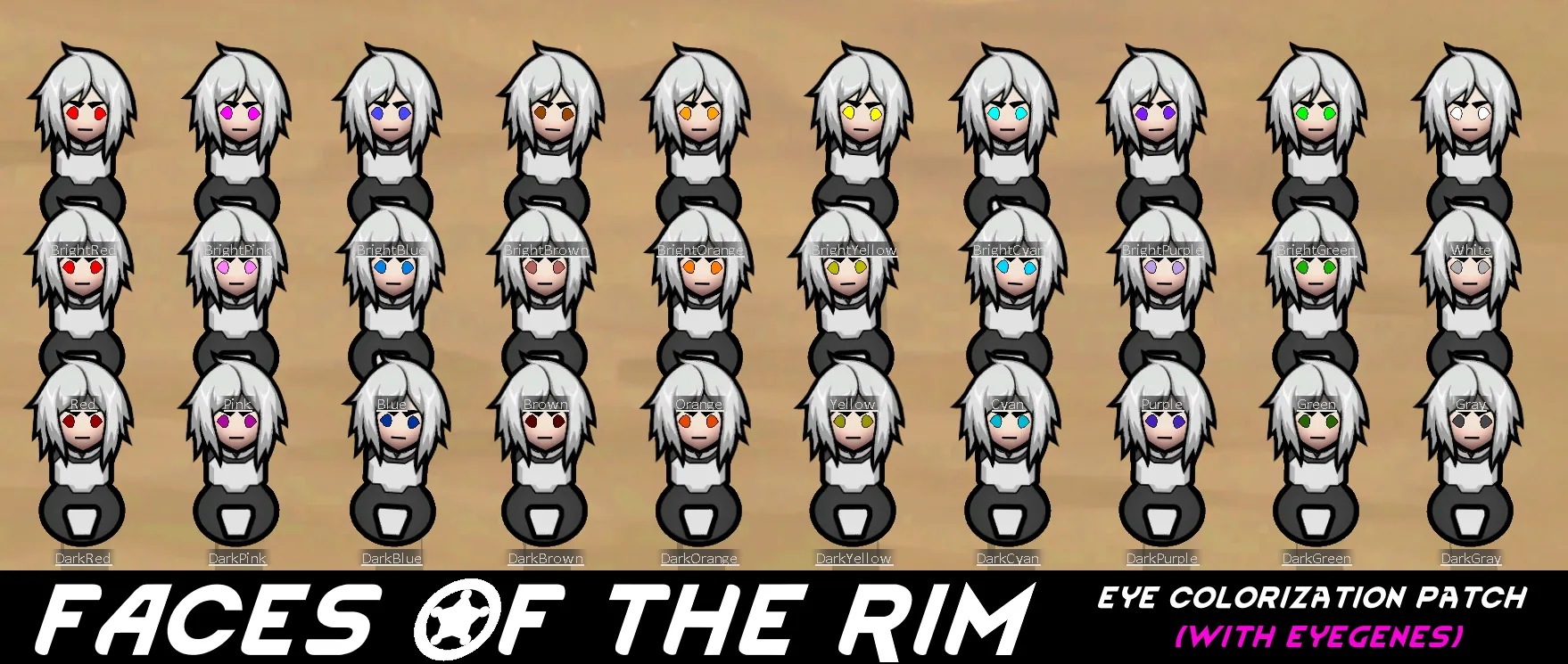 This mod retextures all the eyes for Faces of the Rim to support colorization.