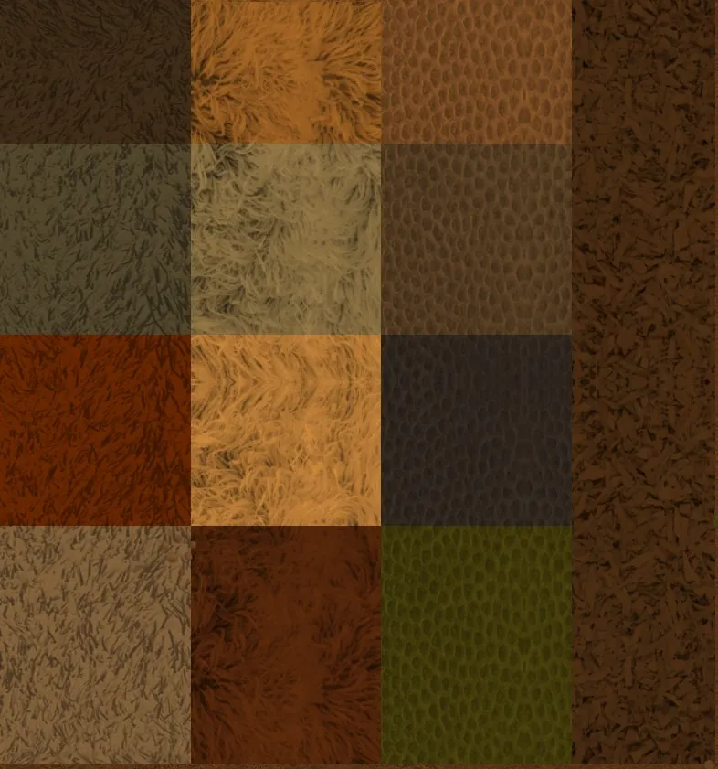 [b]Hide Carpets![/b] Includes soft fur, wool, leather, and patch leather.