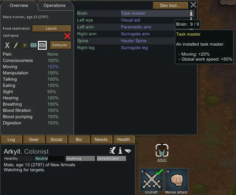 [*] Task Master: Brain implant that increases general workspeed, but is very annoying to the host, unlocks with NeuralComputation