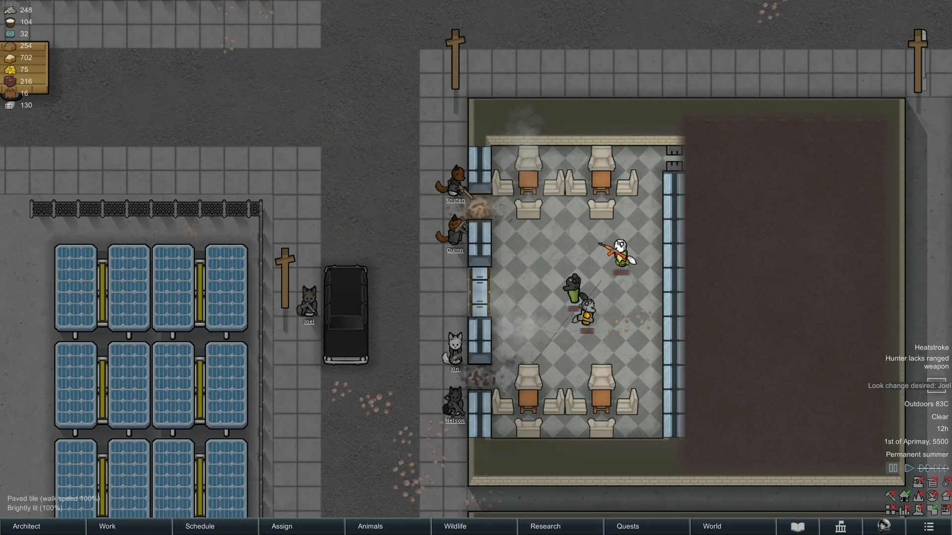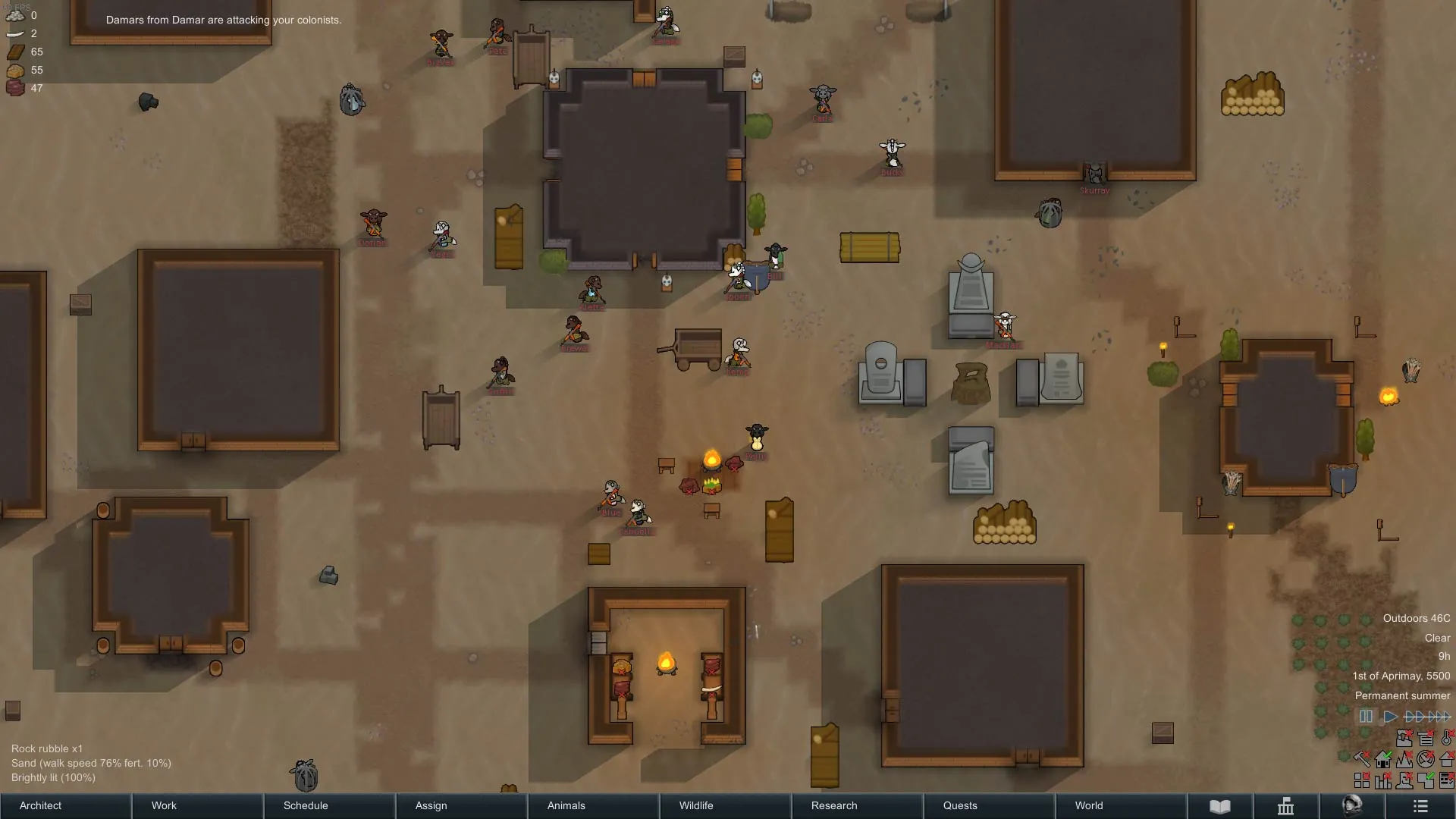 Loosly based of the App B2B extinction the Damar are a goat Xeno faction that's research level ranges from both tribal to industrial level. They only spawn on arid tiles and are neutral to the player. They also spawn using a larger version of the tribal settlement creation as well as on occasion in developed towns.