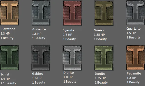 Adds 10 new types of stone and updates the stone graphics for more realism.