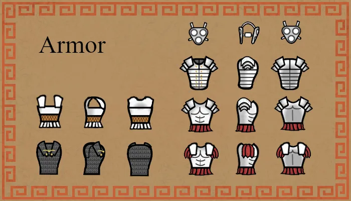 Armor: Various helmets and armors like the famous Lorica Segmentata