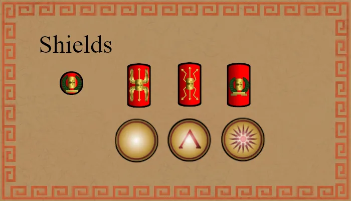 Shields: variants of the Hoplon and Scutum shields and the light Roman Parma Shield