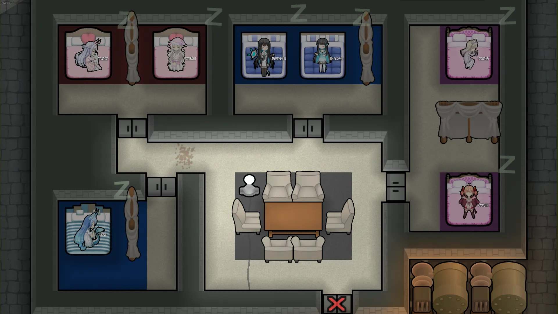 许多不同的床铺!这些床铺可以给这些可爱的少女们提供非常舒适的睡眠体验,你也许应该给她们每一个人分配一间屋子呢~~~(床铺不可以旋转方向的哦)