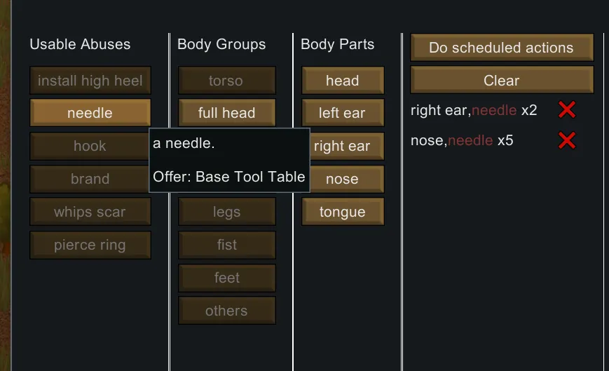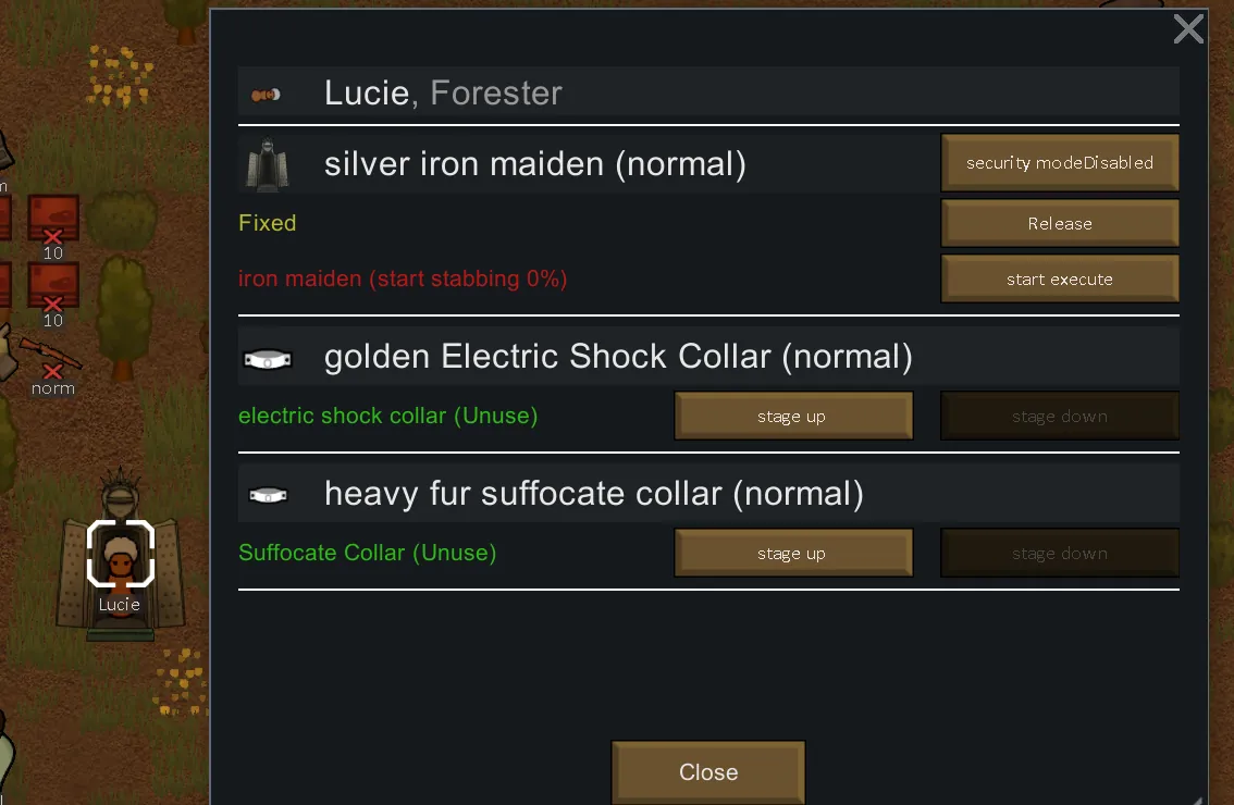 ++Each torture building can be used as entertainment supplies and chairs (only for masochistic pawn), beds (you should manually avoid non masochistic pawn sleeping on them), and torture props (manually enabled)