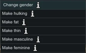 Specifically you can change a pawn's gender and body shape.
