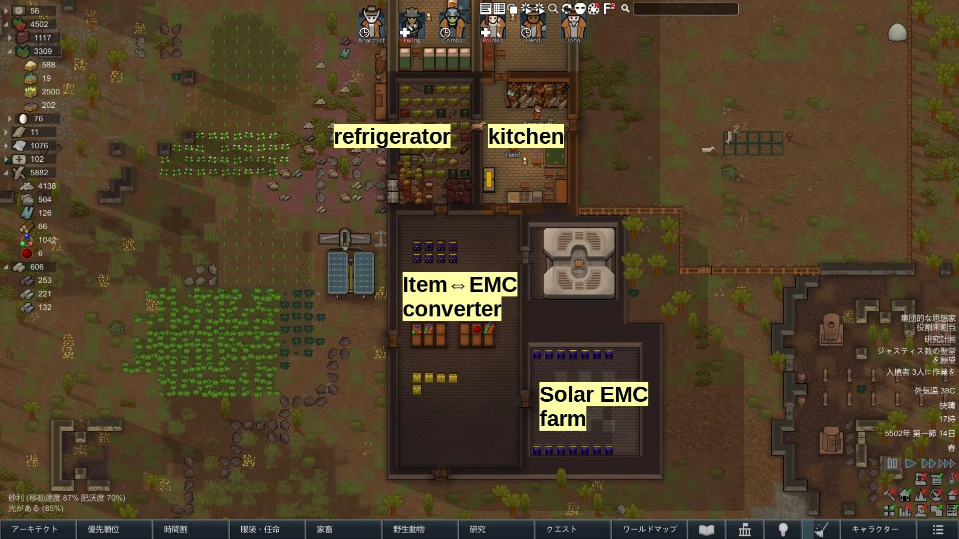 [*] Build Energy Collector Mk1. Push [Processes] button to select items which you want to convert to EMC. Then pawn brings item to Energy Collector. EMC is synthesized one day later. The capacity of Energy Collector Mk1 is so small that it can handle only primitive materials. Raw food, cheap leather, silver, steel and wood log, etc.