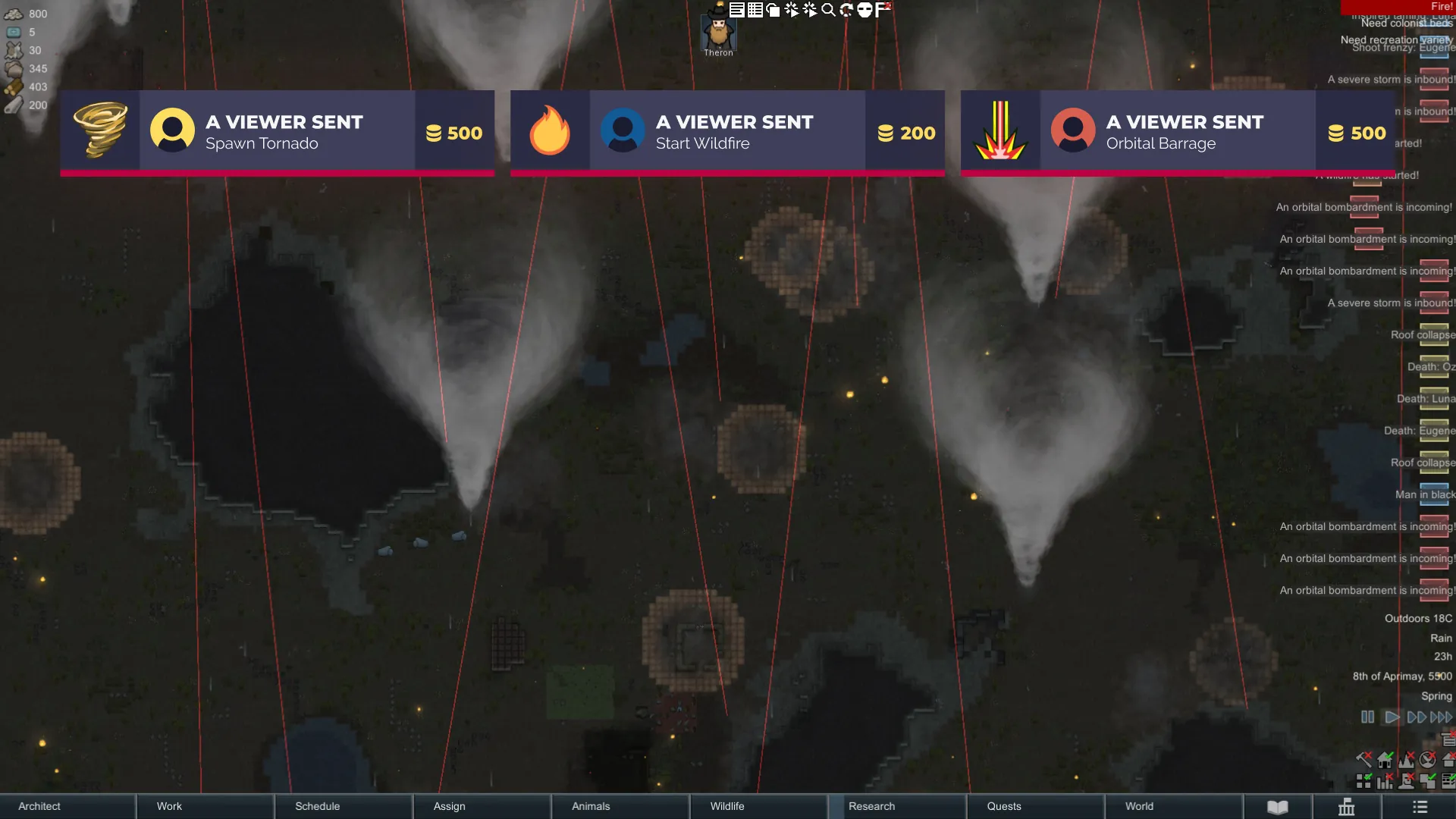 New Recruit - A new recruit joins the colony. If ShouldDisplayViewerName is set within the options, the new pawn will have the triggering viewer's name.