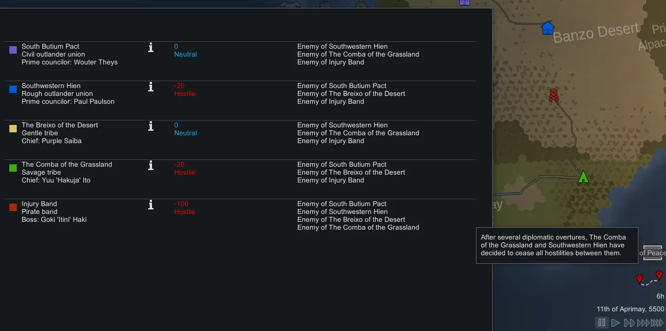 [*] [b]Rim War:[/b] compatible but, as its mod description says, "many similar features, unnecessary to run both mods". My mod just tries to do NPC relationships as background thing with restricted gameplay impact, while RimWar makes them major gameplay component. Recommended to choose whichever you prefer.