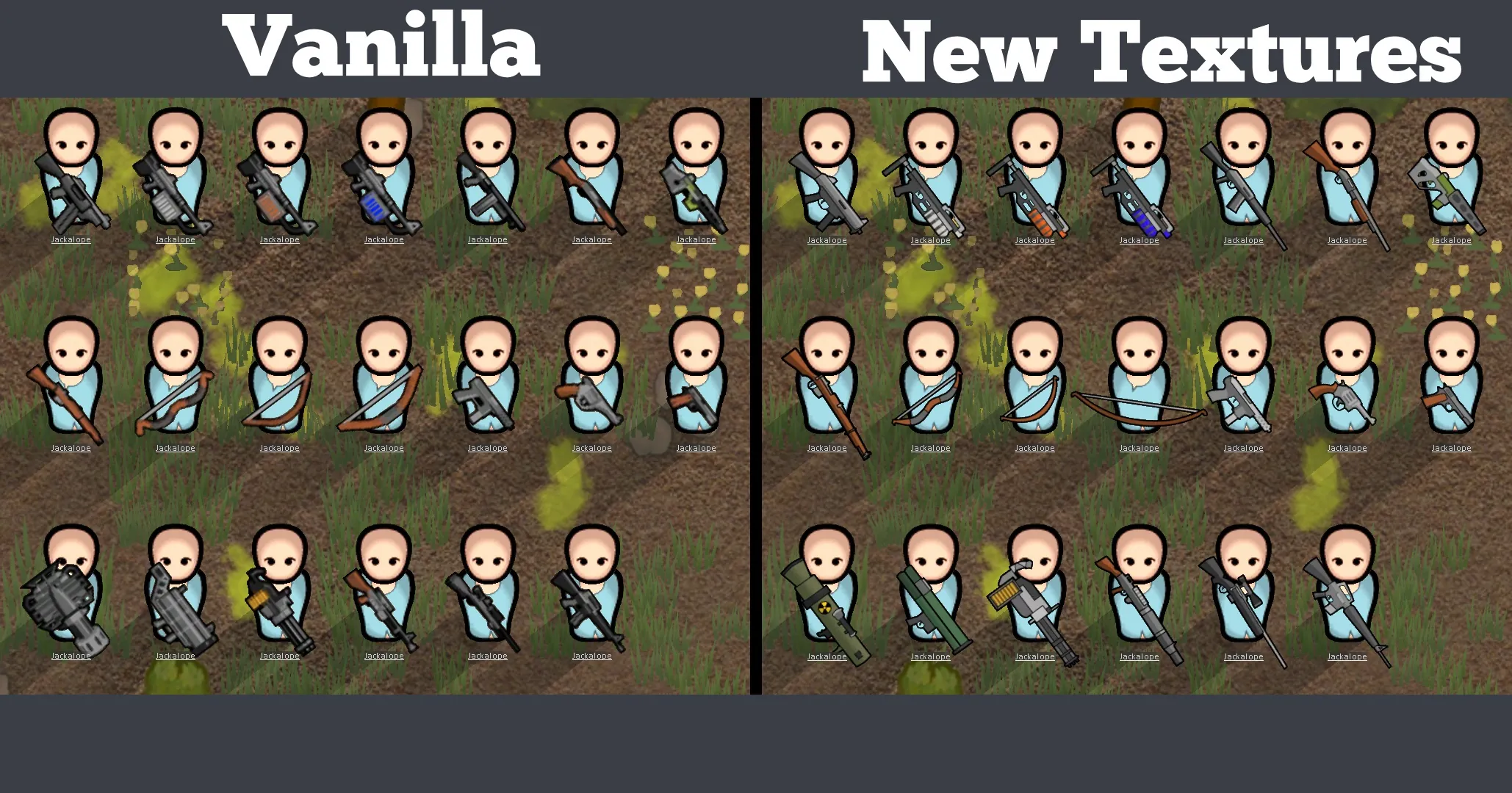 This mod replaces the vanilla sprites for ranged weapons with higher resolution, better looking assets. That is the only thing the mod changes, so there should be 0 compatibility errors with other mods. This mod doesn't change any recipes, damage, etc. This is a purely cosmetic change.