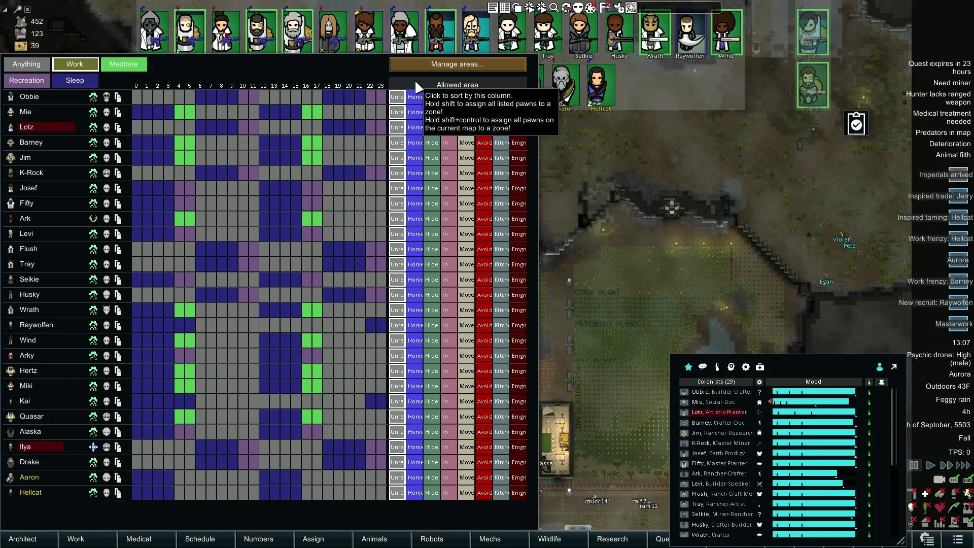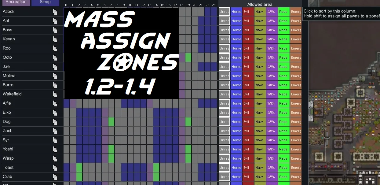 All I've done here is use a harmony transpiler to shove the shift to assign functionality into the base game pawn area assignment columns.