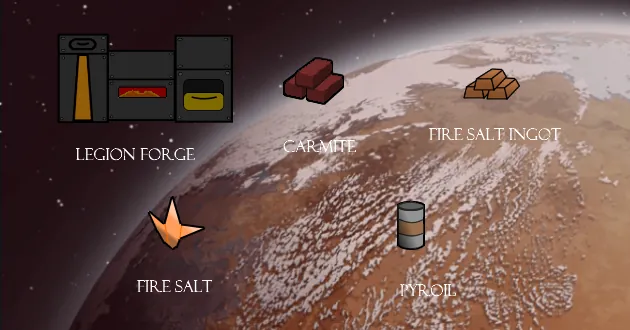 During their war to conquer their homeworld, the legion discovered a method of creating alloys, they experimented with it until they perfected it. First rediscovering bronze, then gilded plasteel, then staballoy until they created the ultimate metal adamantium. They used it for most of their armor and weapons, it was a key factor in their military success. They planned to use it for their conquest of the west of the rim but since most of the other planets they found didn’t have the materials needed to make bronze they had to improvise. Using plasteel, uranium, and gold they made an alloy as red as blood and almost as strong as adamantium. After creating a reliable method of producing this metal they called it Carmite and used it to replace adamantium, using it to make their weapons and armor. This metal has made their rapid expansion possible.