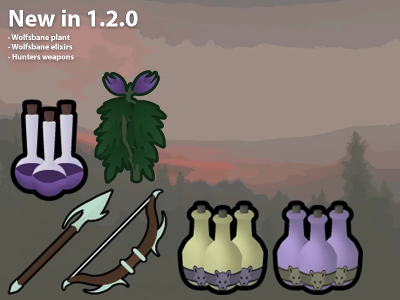 [*] Wolfsbane elixirs. These are made using a new extract, harvested from the wolfsbane plant. Consuming one will provide the pawn some extra defence from Hircine's hounds.