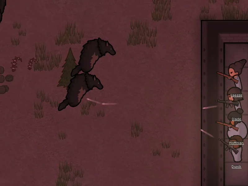 Of course, during a bloodmoon you will not be the only hunter. Werewolf hunting groups will periodically spawn, their only task is to hunt down all living colonists. Attacks from these dangerous beasts may inflict sanies lupinus, a rare disease that seems almost harmless. If left long enough the disease will transition into dormant lycanthropy, which will be activated at the start of the next bloodmoon, [b]permanently[/b] turning the pawn into a [b]rabid[/b] werewolf.