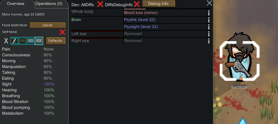 Simple mod adding a hediff for Psysight, which any blind Psycaster can have, the main goal of this was to be compatible with Vanilla Psycasts Expanded so it can handle whatever level range you want for the growth of this ability and whatever buff you want per level in that range.