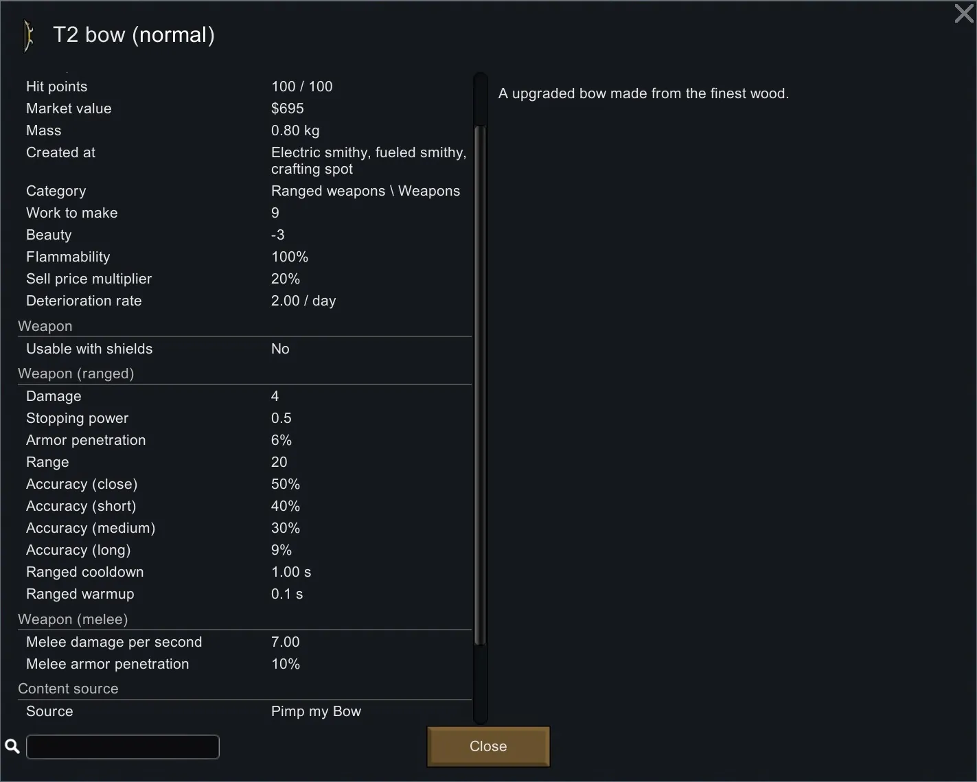 Adds a new bow craftable at the crafting spot that can be upgraded a lot, like a lot a lot!