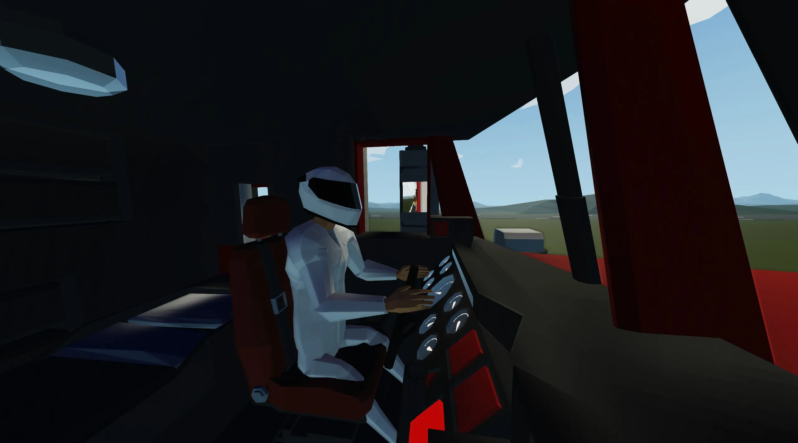 Enter the driver seat and turn on the ignition by pressing (1). You can now drive with W/S A/D .