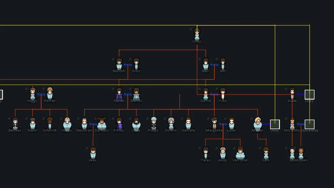 This mod is a fork of Fluffy's Relationship Tab mod. It's designed as a replacement to show your pawns in a structured Family Tree instead of in a vague circle. If you're playing a normal game of Rimworld, this may not be of much interest to you, however if you're playing a game spanning multiple generations of children and you want to see who ends up related to who in the end, give this mod a shot.