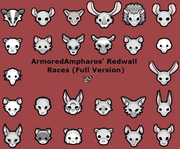 The full version of the Redwall Races mod. The races will now vary in draw size and stats. I recommend using Camera+ because the smaller races may be hard to see without it. I also recommend a mod that allows you to make hats invisible if you like, since this will not include any headgear, and headgear meant for vanilla pawns will look very silly on these races.