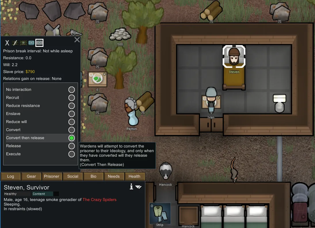 Adds a prisoner-interaction to first convert prisoner and then release them.