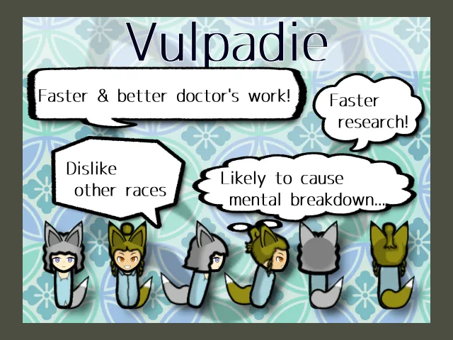 ・ Many Vulpadie dislike other races (including Leporidia and Ursushang)