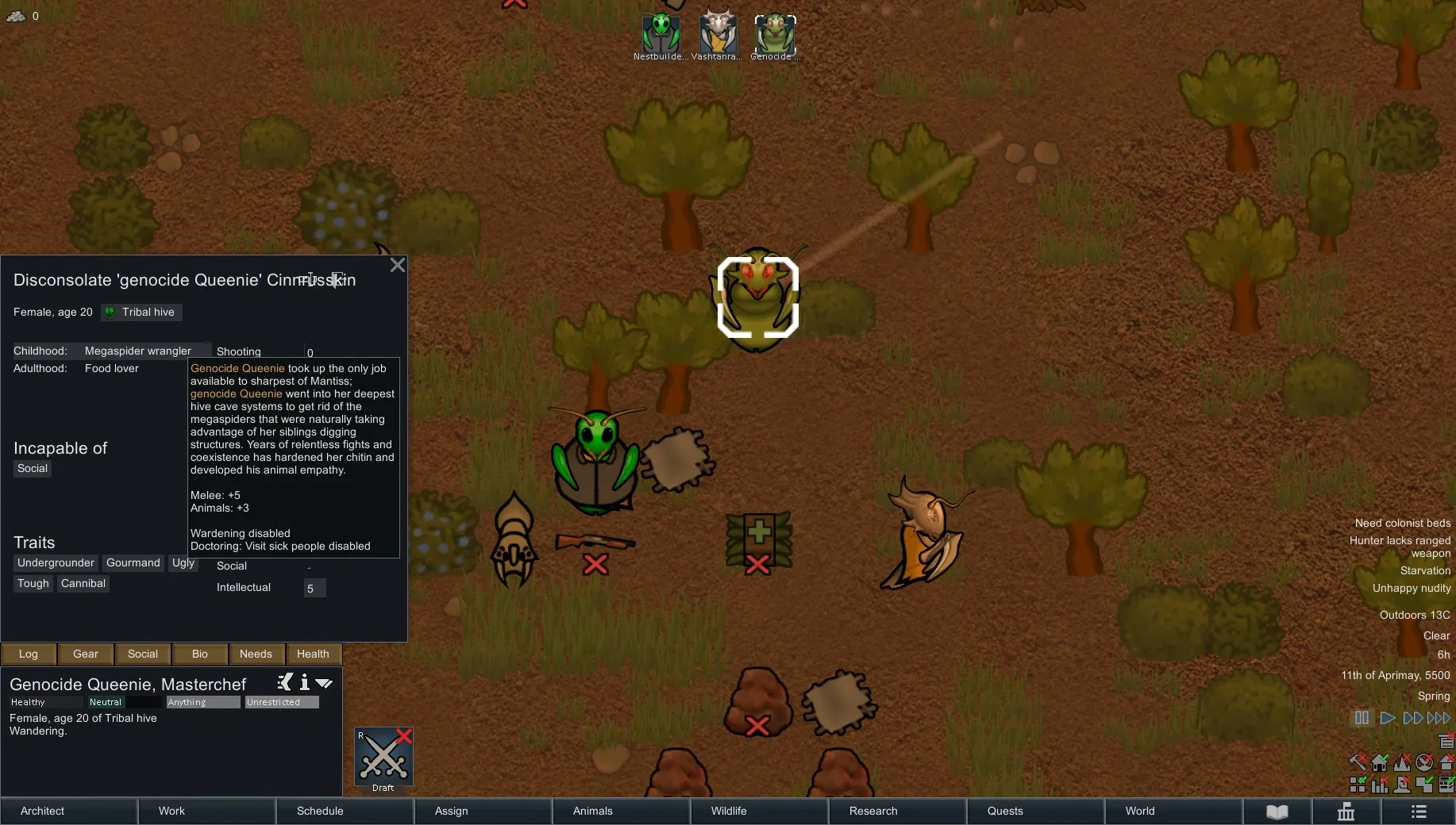 [*] Wooden claws, they are better than nothing. Maybe your mantis wont decapitate the raiders with them.