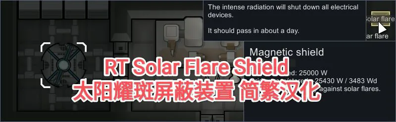 本mod为[url=https://steamcommunity.com/sharedfiles/filedetails/?id=728315620][b] RT Solar Flare Shield [/b][/url]的非官方简繁汉化包。