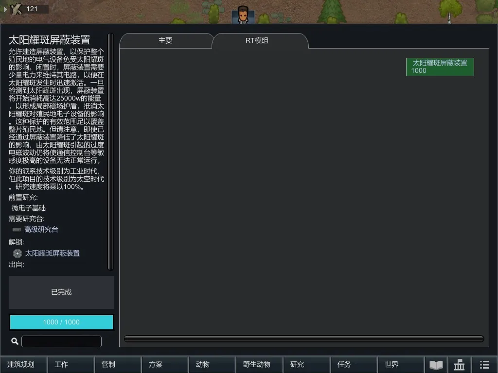 RT太阳耀斑屏蔽装置:增加了一个可以保护殖民地不受太阳耀斑破坏的屏蔽装置,其代价则是极高的电力消耗及巨大的热量排放。