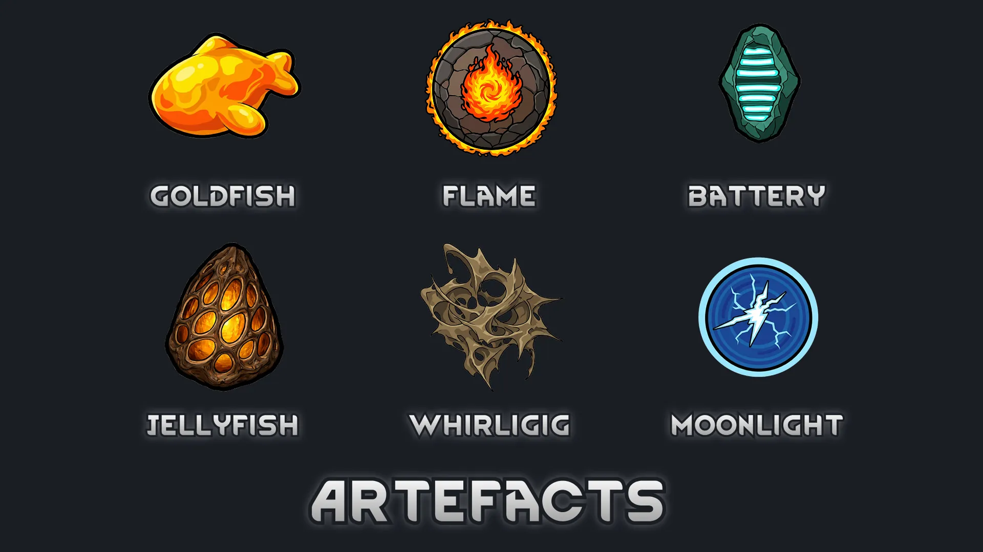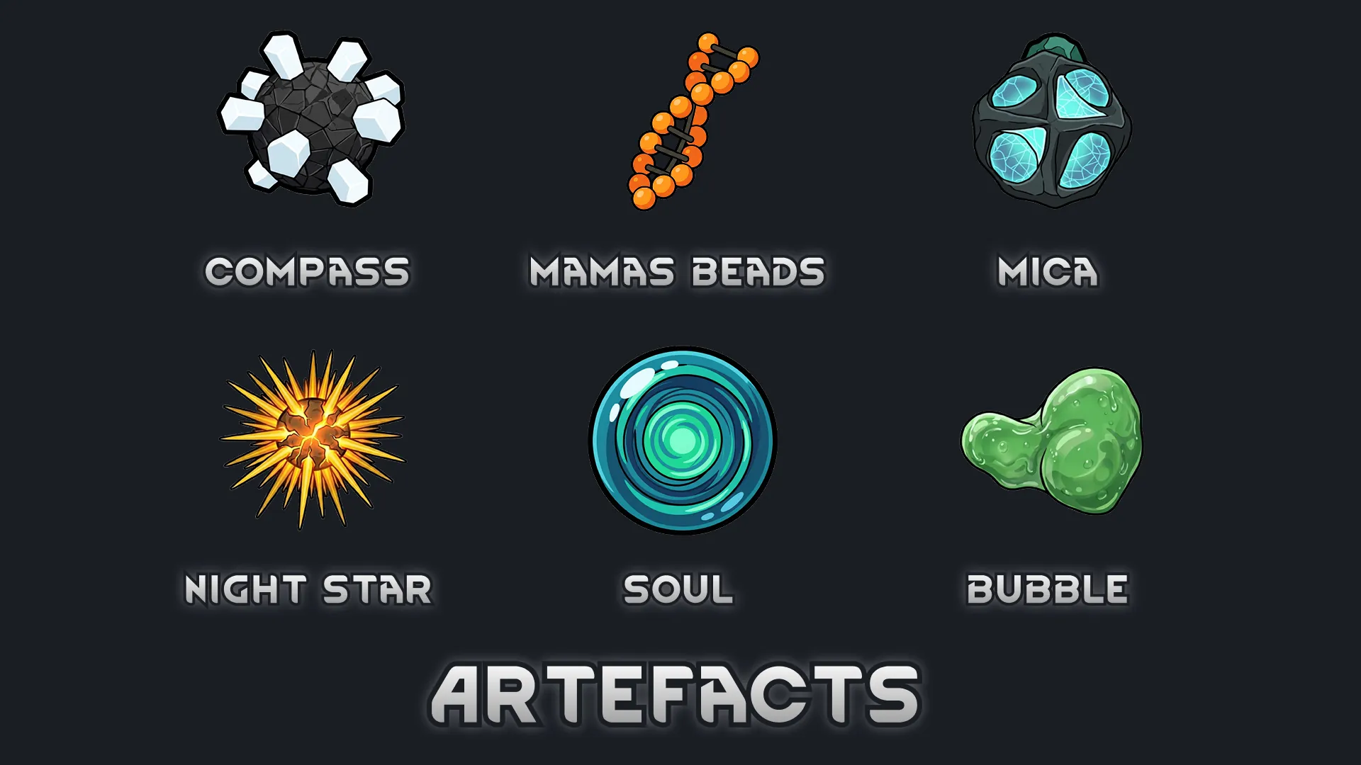 [*] [b]Artifacts[/b] — rare finds with bonuses and drawbacks: [b]Flame, Mommy’s Beads, Moonlight, Bubble, Mica, Night Star, Goldfish, Compass, Battery, Soul, Wrenched, Medusa[/b].