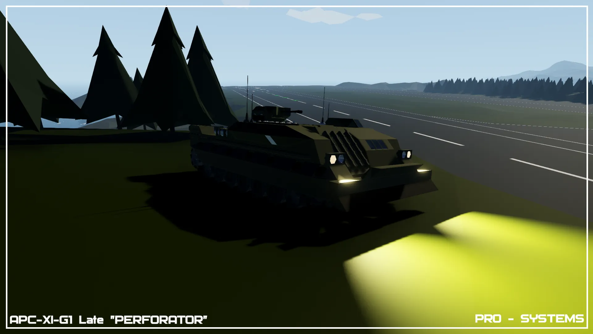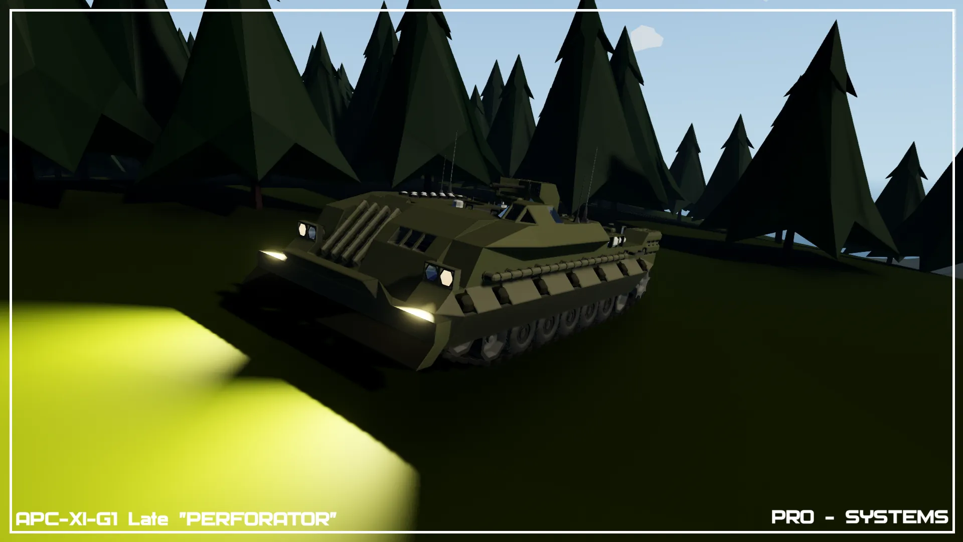 [b]PRO-SYSTEMS, Prokiller, APC, Personal Carrier, Troop Transport, Armored, Light Autocannon, High Firerate, Rocket Boosters, Ramming, Fast[/b]