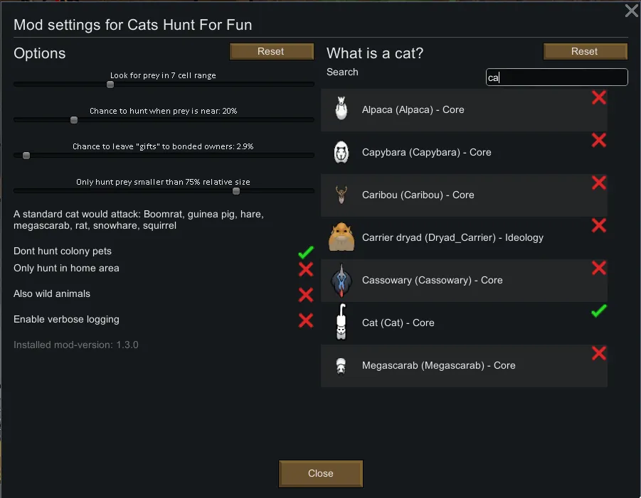 [url=https://steamcommunity.com/sharedfiles/filedetails/changelog/2827497888][img]https://img.shields.io/github/v/release/emipa606/CatsHuntForFun?label=latest%20version&style=plastic&labelColor=0070cd&color=white[/img][/url] | tags: animal activities